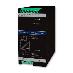 Импульсные блоки питания (источники питания) PSM-120-24 преобразуют сетевое переменное напряжение в диапазоне (150…264) В и постоянное (240…370) В в стабилизированное постоянное напряжение 24 В с током нагрузки до 5 А. Диапазон рабочих температур блока питания (-30…+50) °С. Монтаж на DIN-рельс.